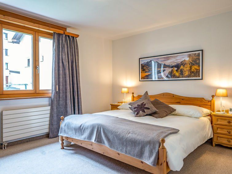 "Chesa Auricula 1.1", 3-room apartment 92 m2, on the ground floor. Spacious and bright, cosy furnishings: living/dining room with TV (flat screen). Exit to the terrace. 1 room with 2 beds (90 cm, length 200 cm). 1 double bedroom with 1 double bed (2 x 90 cm, length 200 cm). Kitchen (oven, dishwasher, 4 ceramic glass hob hotplates, toaster, kettle, microwave, freezer, electric coffee machine, Capsules for coffee machine (Nespresso) extra, fondue Set (cheese)).