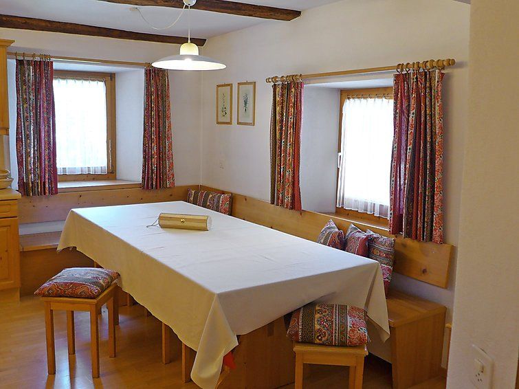 "Chesa Frizzoni", 2-room apartment 70 m2, on the ground floor. Simple and practical furnishings: living/sleeping room, window onto the courtyard with 2 sofabeds and TV (flat screen). 1 room with Dressing room, without window with 1 double bed (1 x 170 cm, length 200 cm). Large kitchen (4 hot plates, oven, dishwasher, toaster, kettle, microwave, electric coffee machine, Capsules for coffee machine (Nespresso) extra) with dining table.