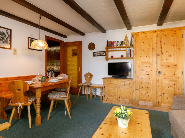 "Residenza Chesa Margun 77-2", 2-room apartment 49 m2, on the ground floor. Comfortable and cosy furnishings: living/dining room with 1 sofabed (110 cm, length 190 cm), dining table and cable TV (flat screen), radio. Exit to the terrace. 1 room with 2 beds (90 cm, length 190 cm). Kitchen (oven, dishwasher).