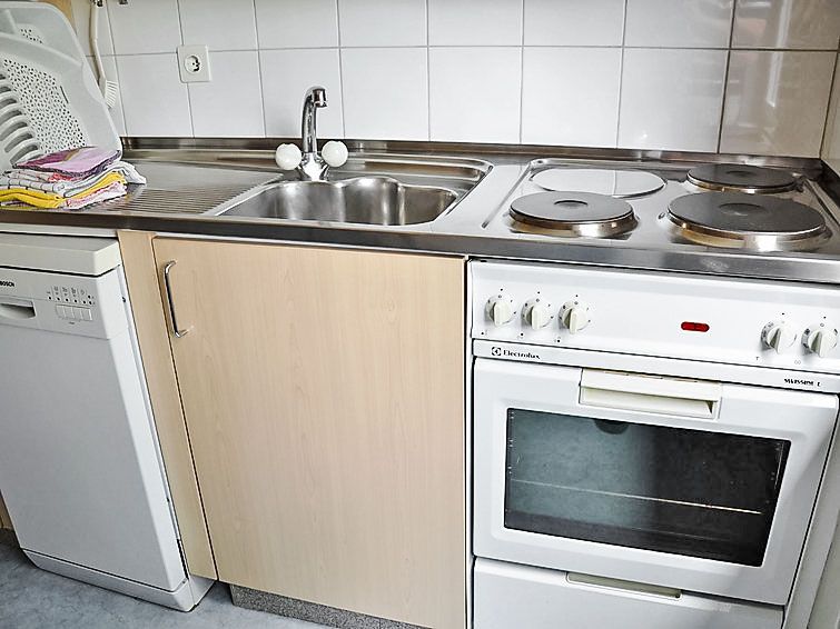 4-room apartment 88 m2 on 1st floor. Spacious and bright, practical and cosy furnishings: open living/sleeping room with 2 fold-away beds (90 cm, length 200 cm), cable TV, flat screen and radio. Exit to the balcony. Dining room with sliding door. Exit to the balcony. 1 double bedroom with 1 double bed (2 x 90 cm, length 200 cm).