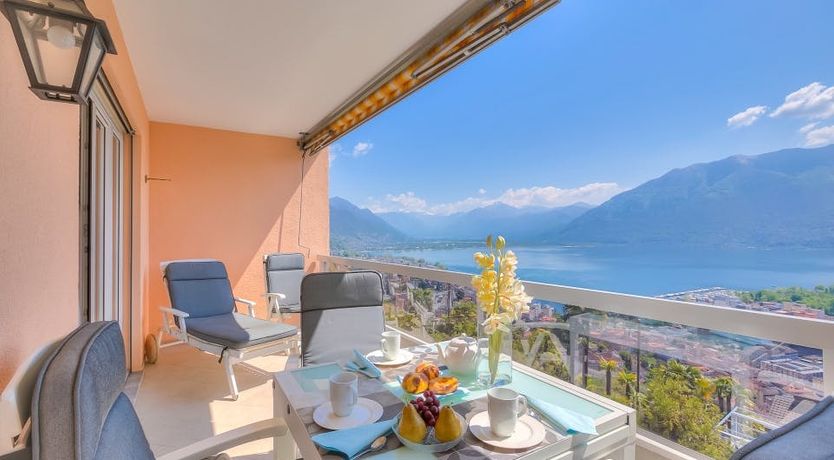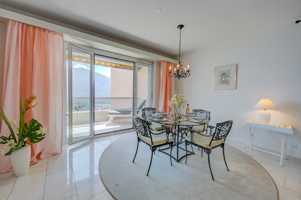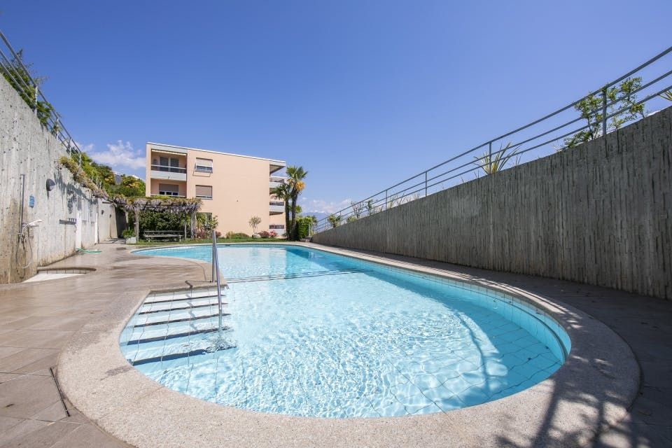 Walking into this bright, open home is dreamy. Two large patio doors welcome in the beautiful sunlight, reflecting on the gallery white walls. Step outside the doors to a mesmerising view of Lake Maggiore and the Swiss Alps, a sight that doesn't get old. Enjoy breakfasts, lunches, dinners, and drinks on the large balcony with the best seat in the house. You'll especially love having your morning coffee here, with the morning sunlight dancing on the calm waters. Locarno proudly holds the title for the warmest place in Switzerland, so we imagine you'll be spending time lounging by the shared pool, dipping in for a swim when the afternoon heat blazes on. When it's time to explore, you're under a twenty-minute walk or five-minute drive from the heart of Locarno. Known for its fondue and local wines, food lovers will adore walking its cobbled streets and stopping into small, traditional food and drink spots. And thanks to its proximity to Italy, Lake Maggiore is actually shared between Italy and Switzerland, you can be sure to enjoy plenty of delicious pastas, pizzas, and gelato. Meander home after a wholesome evening in the city and enjoy a night cap under the pergola in the garden.