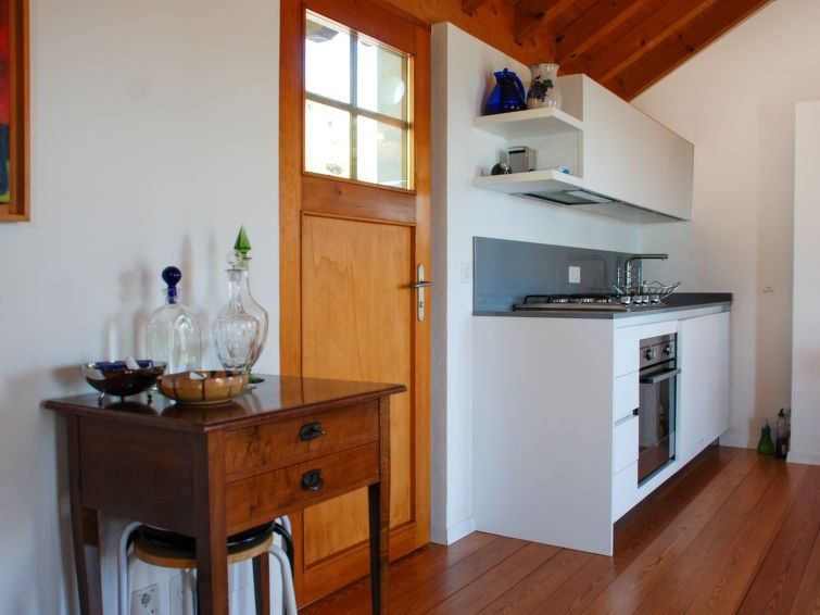 "Baita Pimpisnino", 2-room house 35 m2 on 2 levels. Object suitable for 2 adults + 2 children. Comfortable and cosy furnishings: open living/dining room with 1 sofabed (90 cm, length 200 cm), dining table and wood-burning stove. Exit to the balcony, to the patio. Open kitchen in the entrance (oven, Gas stove, 4 gas rings).