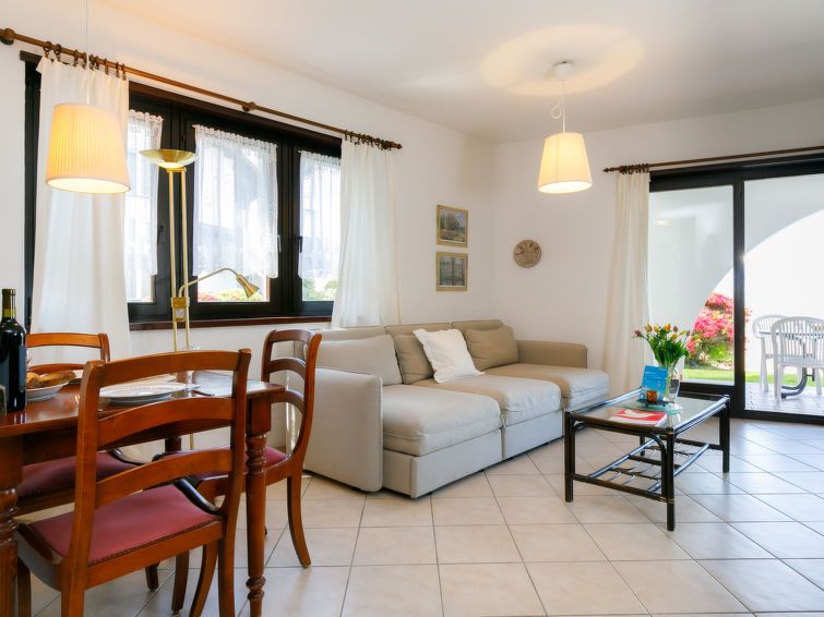 "Residenza Miralago Apt. A4", 1-room apartment 68 m2, on the ground floor. Living/dining room with TV. Alcove with 2 beds. Kitchenette (oven). Bath/WC. Patio. Terrace furniture. View of the lake. Instead of an enclosed bedroom, some sleeping areas are located in an open-plan area (gallery, alcove, etc.