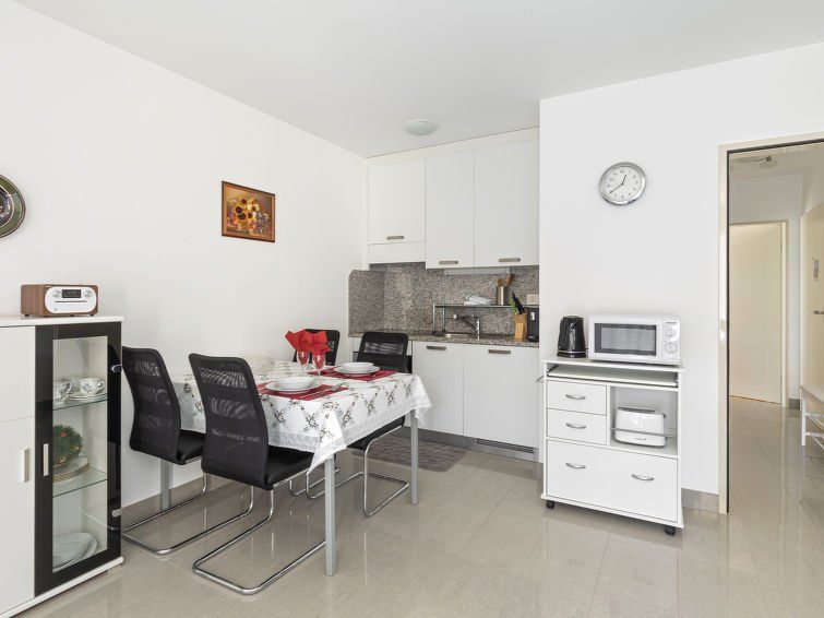 Comfortable, well equipped modern top floor apartment in handy location for the Lido. Quiet evenings & weekends. Nice balcony. Close to Denner for groceries, although Migros currently closed (2025). Shower a bit small, especially if you have to bend to pick anything up. Would have given a higher rating if there had been a fan in the bedroom as it was hot at night. Be advised interhome only provide 1 taxed rubbish bag & you need to purchase more from them if your rubbish smells in the heat.