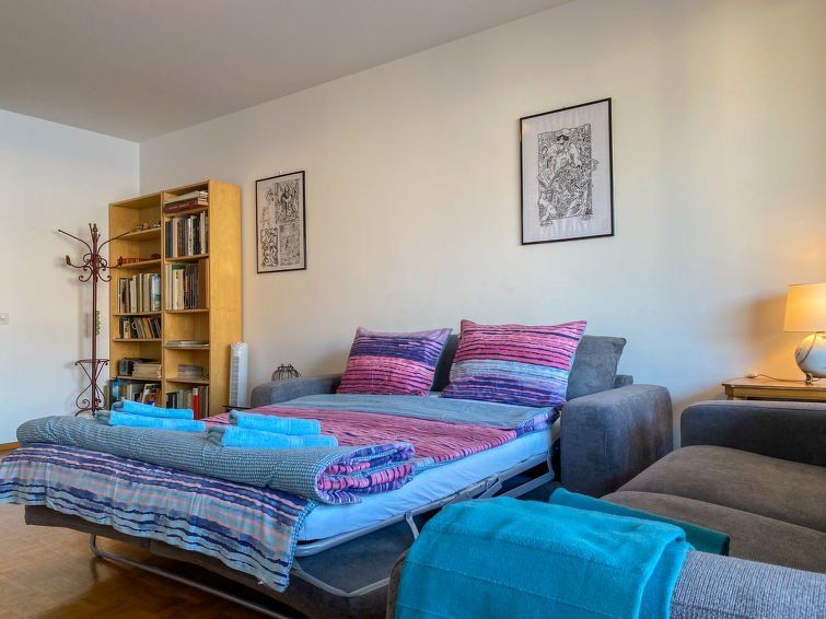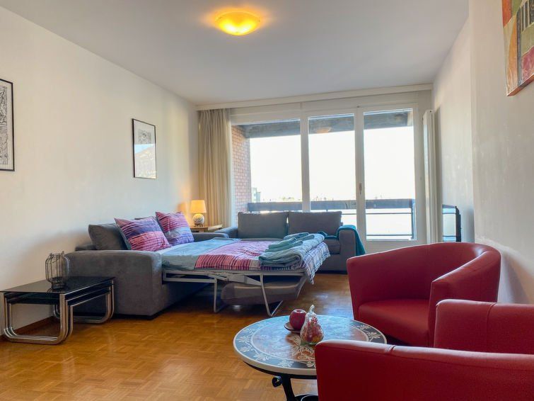 Very nice view from the balcony of the lake, city and mountains! Dining and living room are large, bathrooms are on the small side and dated, but everything worked well and was very clean. The kitchen is contemporary. You can hear the trains in the back bedroom, but that didn't bother us much. Migros and Denner in Paradiso can be reached in about 7 minutes on foot. The key removal from the old key box is a bit tedious, there was no personal. key collection.