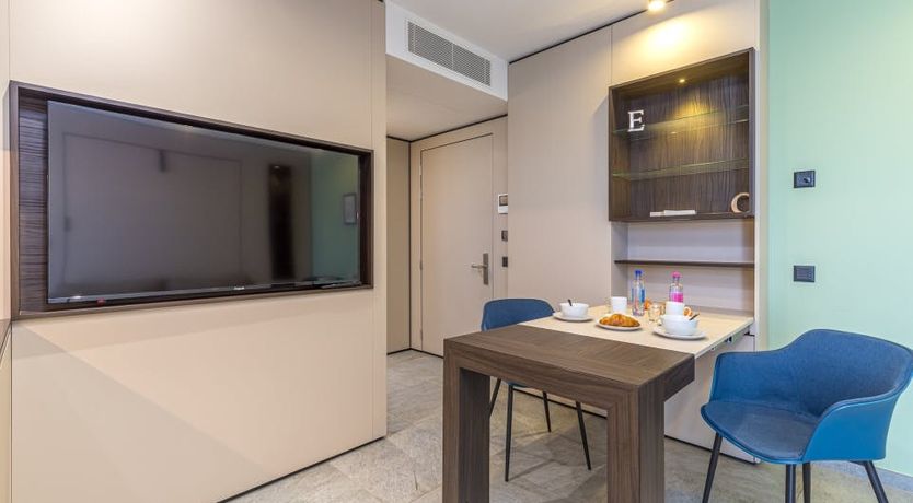 This home really does lend itself to any occasion, making excellent use of its space – you can get some work done on your desk by day, and pull it out to reveal a romantic dining space by night. Or, you can make use of the building's co-working space, perfect for holding meetings. And if work's the last thing on your mind, you can sit back, relax, and watch the smart TV on the cosy sofa while sipping on a fresh coffee, before heading down to the outdoor restaurant for breakfast.