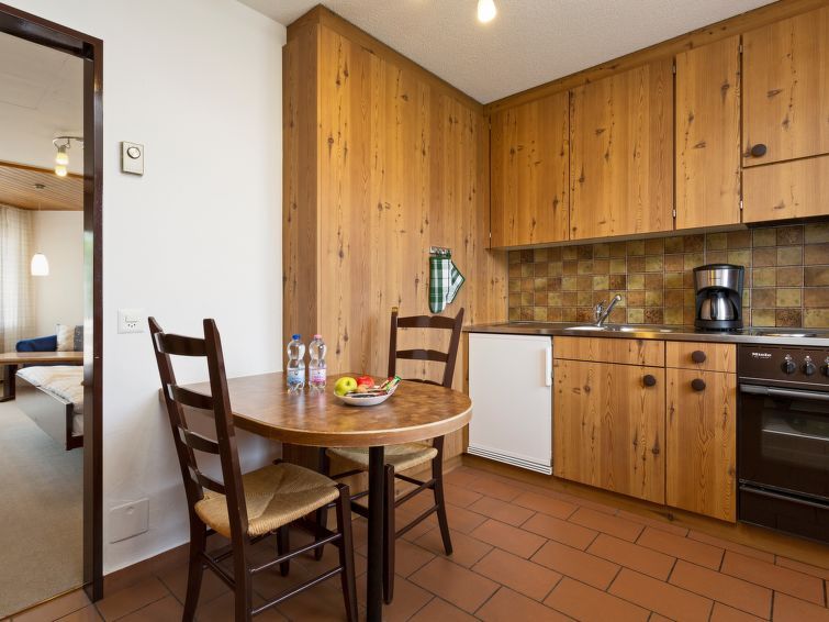 1-room apartment 30 m2. Comfortable and cosy furnishings: large living/dining room with 2 beds (90 cm, length 200 cm), dining nook and cable TV (flat screen). Exit to the balcony. Kitchen-/living room (3 hot plates, oven, kettle, electric coffee machine). Shower/WC. Balcony, south facing position and west facing position.
