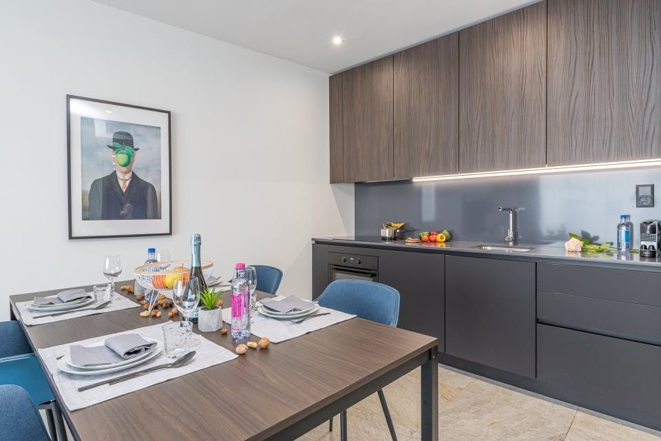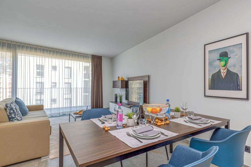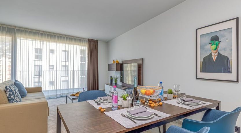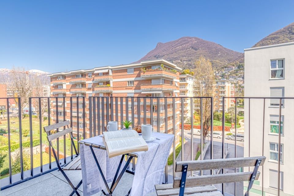 Perched on the fourth floor of a serviced building, this home provides a beautifully equipped base for exploring Lugano with plenty of communal amenities, including a gym, restaurant, bar and lush gardens for alfresco drinks. It's just an eight-minute walk from the city's central square, the Piazza Della Riforma, and within easy walking distance of all the main sights. If you're travelling for business, the exhibition centre is only eleven minutes away on foot, and with a co-working space on-site, it's the perfect place for catching up on projects between adventures.