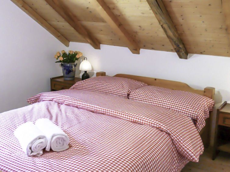 "Baita Ficc", 2-room cottage 58 m2 on 2 levels, south facing position. Partly with sloping ceilings, practical and rustic furnishings: open large living/dining room with open-hearth fireplace, dining nook and satellite TV (flat screen). Exit to the garden, to the terrace. Open kitchen (Gas stove, 4 gas rings) with wood-burning stove.
