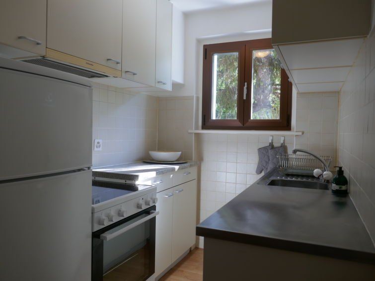 "Lara", 2-room apartment on the ground floor. Object suitable for 2 adults. Comfortable and cosy furnishings: open living/dining room with dining table and TV (flat screen). 1 double bedroom with 1 double bed (1 x 160 cm, length 200 cm). Kitchen (oven, 4 ceramic glass hob hotplates, toaster, kettle, freezer, electric coffee machine, Capsules for coffee machine (Nespresso) extra, raclette grill).