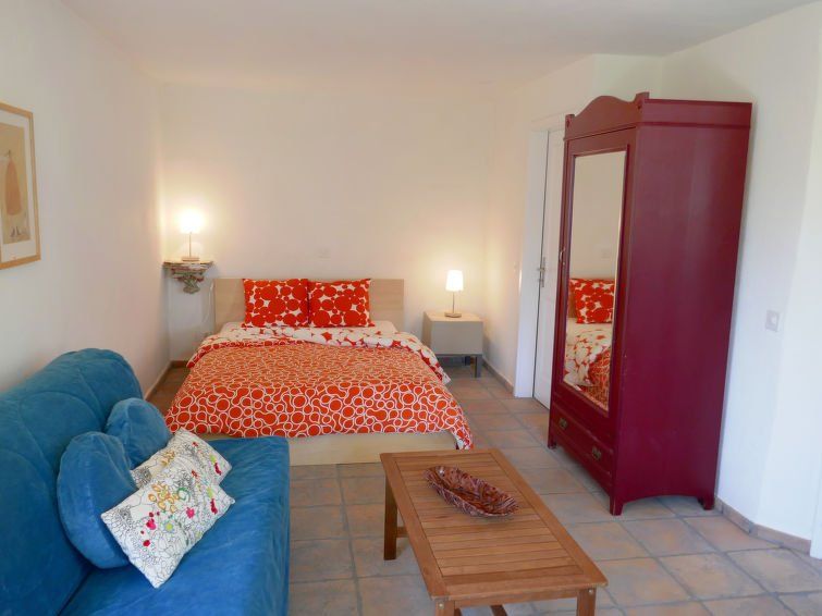 "Nelly", 1-room apartment 28 m2, on the ground floor. Practical and cosy furnishings: living/sleeping room with 1 sofabed and 1 french bed (140 cm, length 200 cm), cable TV, flat screen and radio. Exit to the terrace. Open kitchen (oven, 4 ceramic glass hob hotplates, microwave, grill, electric coffee machine) with dining table.