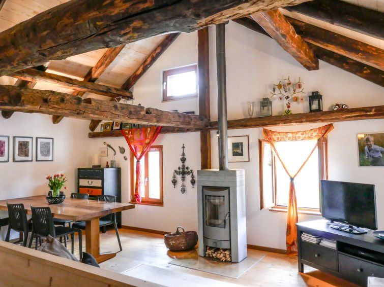 "Rustico 1787", 3-room house 60 m2 on 2 levels. Comfortable and cosy furnishings: open living/dining room with Scandinavian wood stove, TV, flat screen, radio and DVD collection available. Exit to the patio. Open kitchen (oven, dishwasher, 4 ceramic glass hob hotplates). Exit to the terrace.