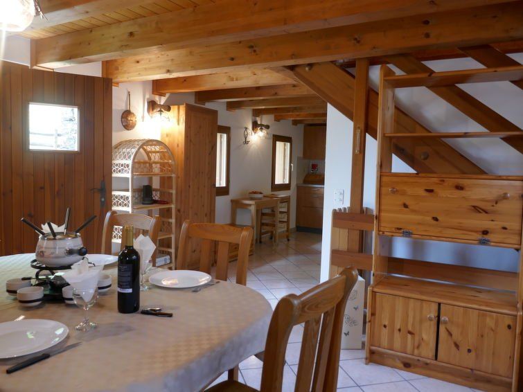 "Rustico Cleo", 4-room house. Partly with sloping ceilings, comfortable and rustic furnishings: open dining room with open-hearth fireplace and dining table. Exit to the garden. Open kitchen (dishwasher, 4 ceramic glass hob hotplates, toaster, kettle, microwave, electric coffee machine, Capsules for coffee machine (Nespresso) extra, raclette grill, fondue Set (chinoise, cheese)).