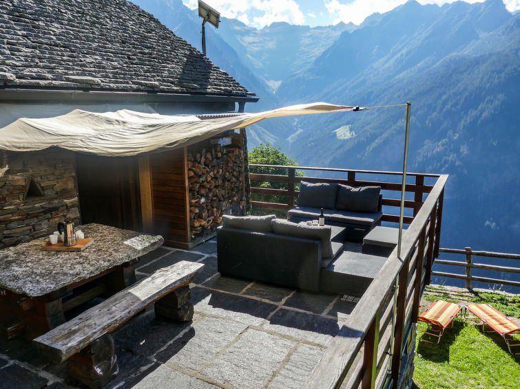 "Rustico Catcüc", 3-room house 80 m2 on 2 levels. Spacious and bright, comfortable and rustic furnishings: large kitchen-/living room (Gas stove, 4 gas rings, fondue Set (cheese)) with dining table, open-hearth fireplace, radio and wood-burning stove. Exit to the terrace. On the lower ground floor: 1 large double bedroom with 1 double bed (1 x 160 cm, length 200 cm), wood-burning stove.