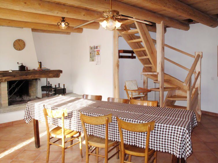 "Rustico Diego", 2-room house 50 m2 on 2 levels, west facing position. Simple and rustic furnishings: open living/dining room with open-hearth fireplace, dining table, satellite TV and radio. Open kitchen (oven, 4 ceramic glass hob hotplates, kettle, electric coffee machine) with wood-burning stove.