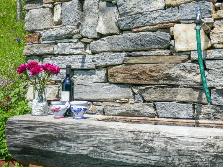 "Rustico Pamela", 2-room cottage 60 m2 on 2 levels, south facing position. Spacious, partly with sloping ceilings, simple and rustic furnishings: open living/dining room with Scandinavian wood stove, satellite TV, flat screen and radio. Exit to the terrace, pergola. Open kitchen (Gas stove, 4 gas rings, fondue Set (cheese)) with dining nook.
