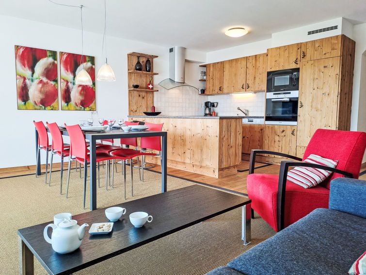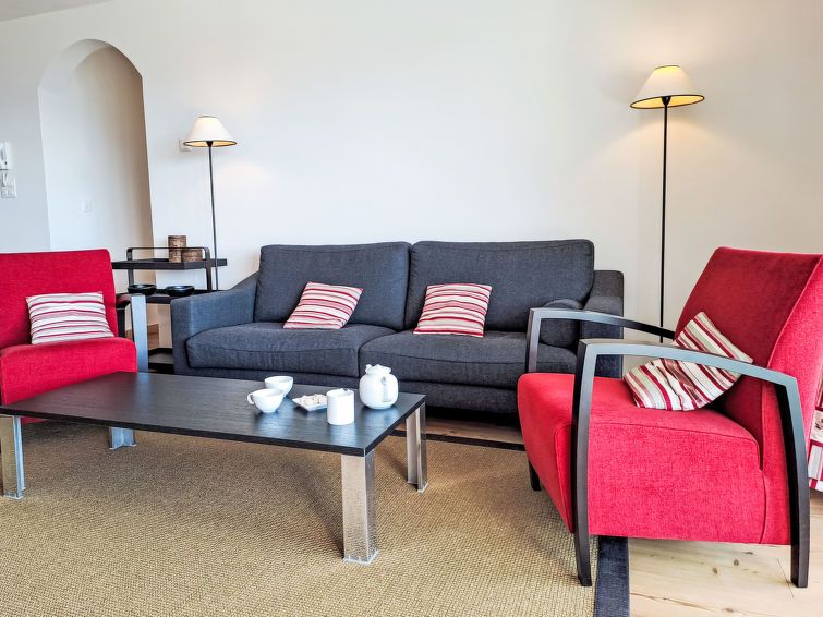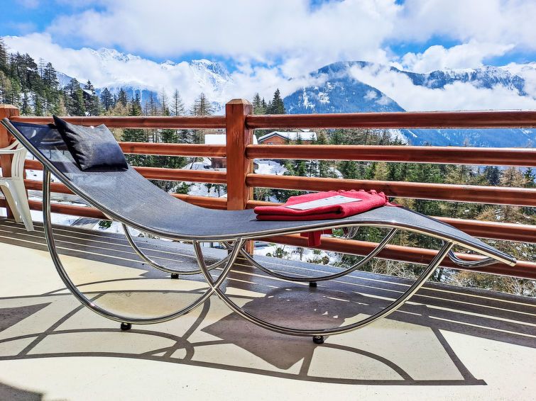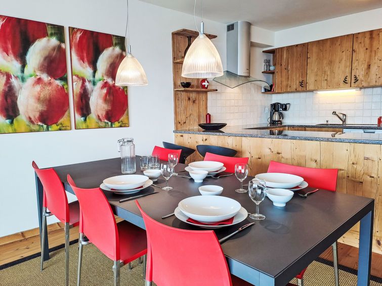"Les Combins 30", 3-room apartment 95 m2 on 3rd floor, south facing position. Spacious and bright, beautiful and tasteful furnishings: large living/dining room with TV and electric heating. 1 large room with 1 double bed (1 x 180 cm, length 200 cm). Exit to the terrace. 1 room with 1 x 2 bunk beds (90 cm, length 200 cm).