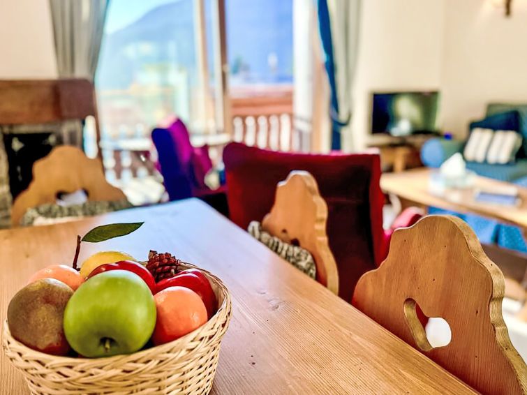 "Les Renardeaux 5", 2-room apartment 60 m2 on 2nd floor. Spacious and bright, very beautiful and tasteful furnishings: living/dining room with open-hearth fireplace and cable TV. Exit to the balcony. 1 room with 2 beds (90 cm, length 200 cm), bath/bidet/WC. Exit to the balcony. Open kitchen (oven, dishwasher, 4 ceramic glass hob hotplates, toaster, kettle, microwave, freezer, electric coffee machine, Capsules for coffee machine (Nespresso) extra).