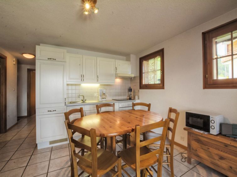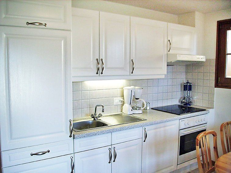 3-room apartment 70 m2, on the upper ground floor. Practical furnishings: living/dining room with dining table, cable TV and radio. 2 rooms, each room with 2 beds. Open kitchen (4 hot plates, oven). Bath/WC. Large terrace, south facing position. Terrace furniture. Beautiful view of the mountains and the countryside.