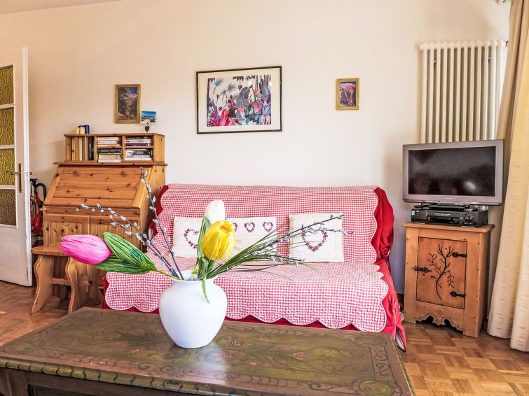 "Marigny Cervin C19", 3-room apartment 61 m2 on 3rd floor. Comfortable and tasteful furnishings: living/dining room with dining table, cable TV, CD-player and DVD. Exit to the balcony, south-west facing position. 1 room with 1 french bed (140 cm, length 200 cm). Exit to the balcony, west facing position.