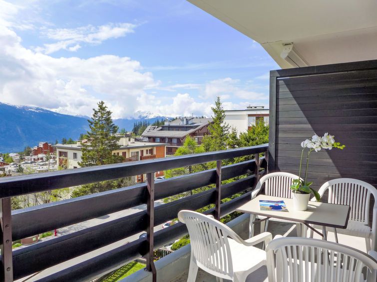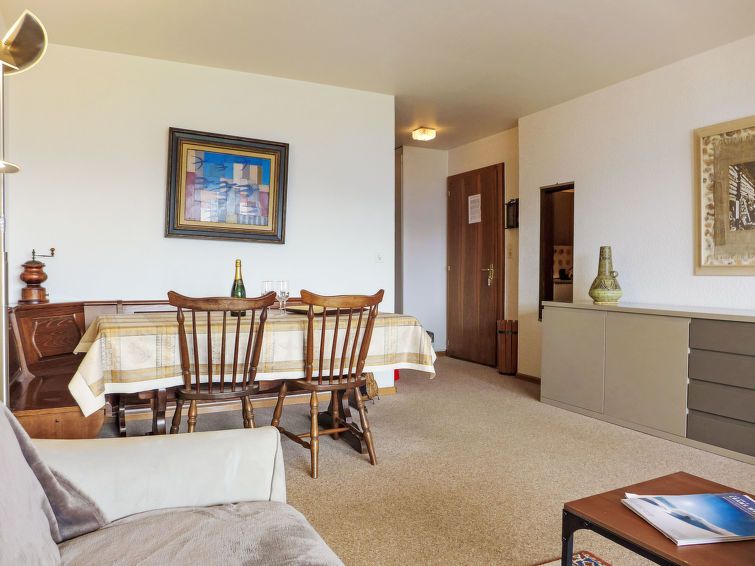 "Merises 17", 2-room apartment on 2nd floor. Living/dining room with 1 sofabed, dining table and cable TV (flat screen). Exit to the balcony. 1 room with 2 beds (90 cm, length 190 cm). Small kitchen (3 hot plates, oven, electric coffee machine). Bath/bidet/WC. Balcony 7 m2, south facing position.