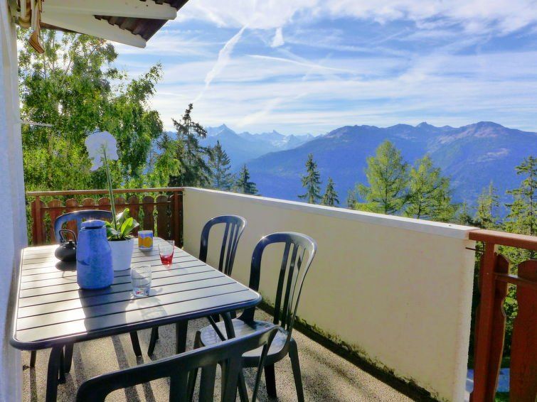 Beautiful, large apartment. Very well furnished. Balcony with a fantastic view of the Valais mountains. Bus stop in front of the house