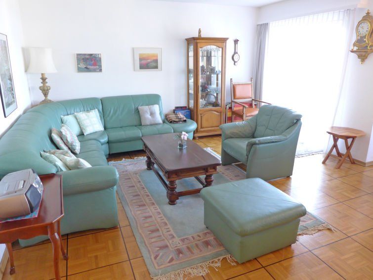 "Vermala Soleil B 13", 3-room apartment 80 m2 on 4th floor. Spacious and bright: living/dining room with cable TV (flat screen), hi-fi system, DVD and DVD collection available. 1 room with 1 french bed (180 cm, length 200 cm). 1 room with 1 double bed (2 x 90 cm, length 200 cm). Large kitchen (oven, dishwasher, 4 ceramic glass hob hotplates, toaster, kettle, microwave, electric coffee machine, Capsules for coffee machine (Nespresso) extra, raclette grill, fondue Set (chinoise, cheese)).