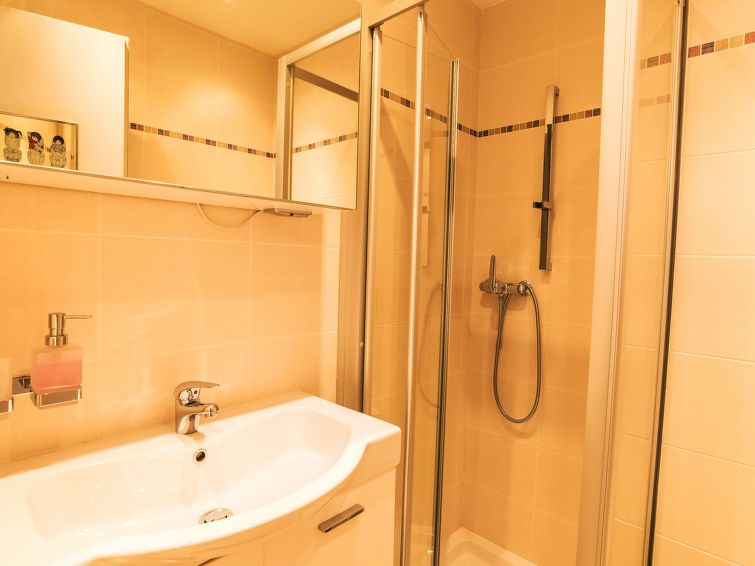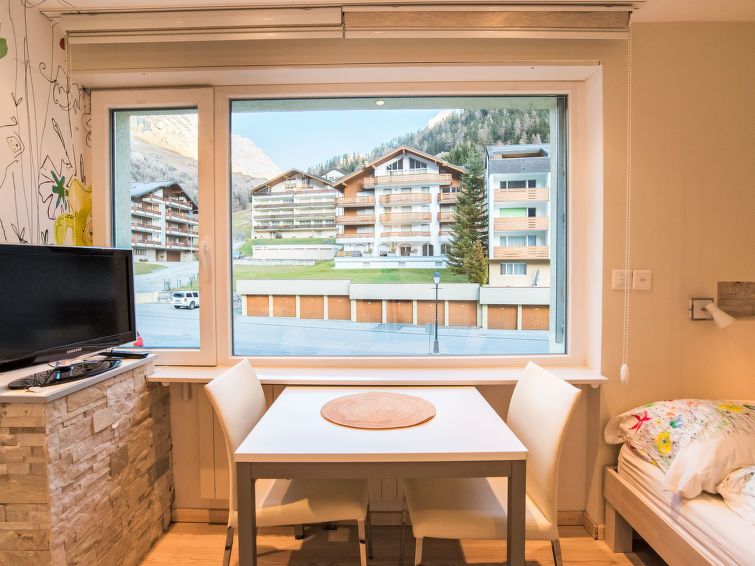"Cristal 46", 1-room studio 18 m2 on 2nd floor. Renovated, beautiful and cosy furnishings: living/sleeping room with 1 double bed and cable TV. Small kitchen (oven, 3 ceramic glass hob hotplates, kettle, electric coffee machine). Shower/WC. Parquet floors. Beautiful view of the mountains.