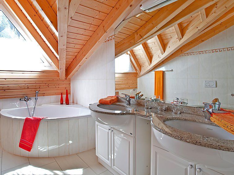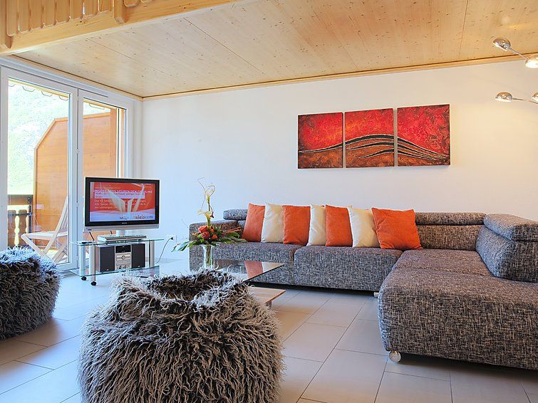 3-room penthouse 98 m2 on 2 levels on 4th floor. Comfortable and tasteful furnishings: living/dining room with open-hearth fireplace and cable TV (flat screen), hi-fi system and DVD. Exit to the balcony, south facing position. 1 room with sloping ceilings with 1 double bed, bath/bidet/WC and cable TV (flat screen).