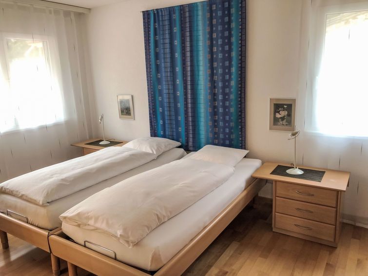 3-room apartment 90 m2, on the ground floor. Cosy furnishings: living/dining room with cable TV (flat screen), radio and DVD. Exit to the terrace. 2 double bedrooms, each room with 2 beds. Open kitchen (oven, dishwasher, 4 ceramic glass hob hotplates, microwave, freezer). Shower/WC, sep.