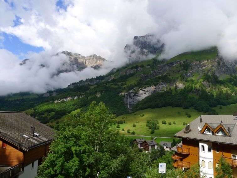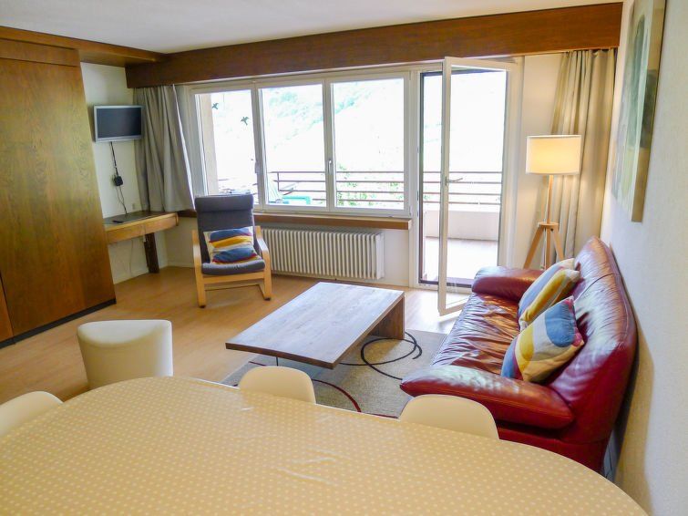1-room apartment 50 m2 on 1st floor. Cosy furnishings: living/dining room with 2 fold-away beds and cable TV (flat screen). Exit to the balcony. Alcove with curtain with 2 x 2 bunk beds. Kitchen (4 hot plates, oven) with hatch. Shower/WC, sep. WC. Balcony. Balcony furniture. View of the mountains, the valley and the countryside.