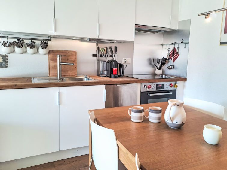 "Apollo", 2-room apartment 30 m2, on the ground floor. Simple and practical furnishings: living/dining room with TV. Exit to the terrace. 1 room with 1 double bed (160 cm, length 200 cm). Open kitchen (oven, dishwasher, 4 ceramic glass hob hotplates, kettle, electric coffee machine, Capsules for coffee machine (Nespresso), raclette grill, fondue Set (cheese)).