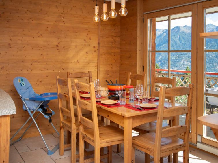 Well located, quiet near the shuttle and the thermal baths. Very comfortable apartment, well arranged, well equipped, practical, large cupboards, on the ground floor, nothing is missing, large bathroom with bathtub and separate shower room. Large entrance, large living room and very large terrace with magnificent views. Very professional, responsive and friendly Interhome agency.