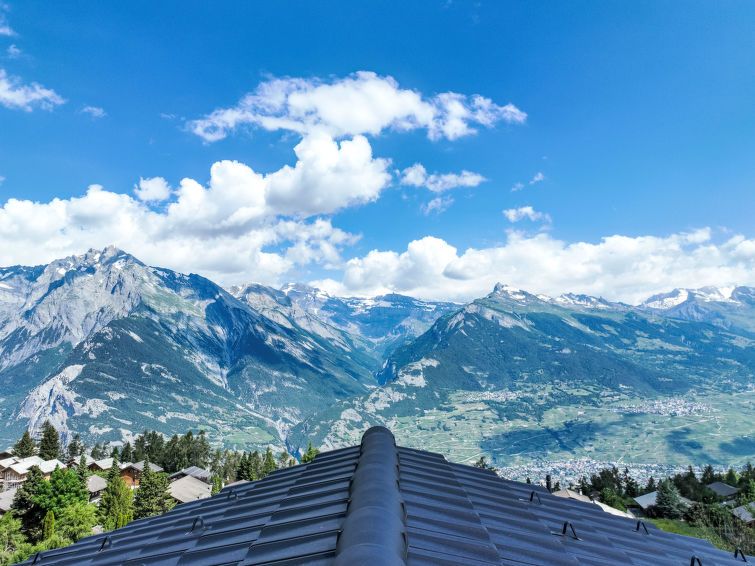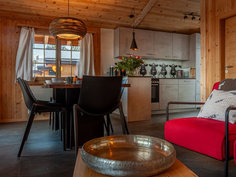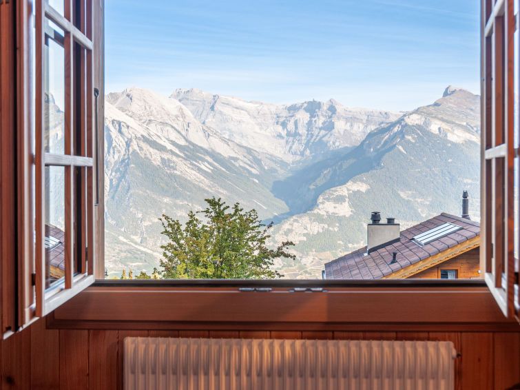 Nice cozy chalet with a spacious view of the mountains. Well supplied with crockery, cutlery and kitchen utensils. Kitchen a bit cramped, can only be one person there at a time. if the dishwasher is open you are stuck. Furniture not very luxurious, thin cushions on the wooden benches, at least one bed squeaked. Bathroom furniture is old and creaky. Warned of the limited capacity of the boiler, it was more than enough for 5 people. Clean except for some cobwebs. Wifi perfectly fine. Stairs to entrance.