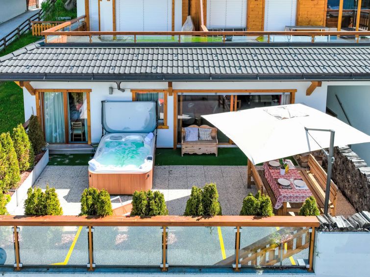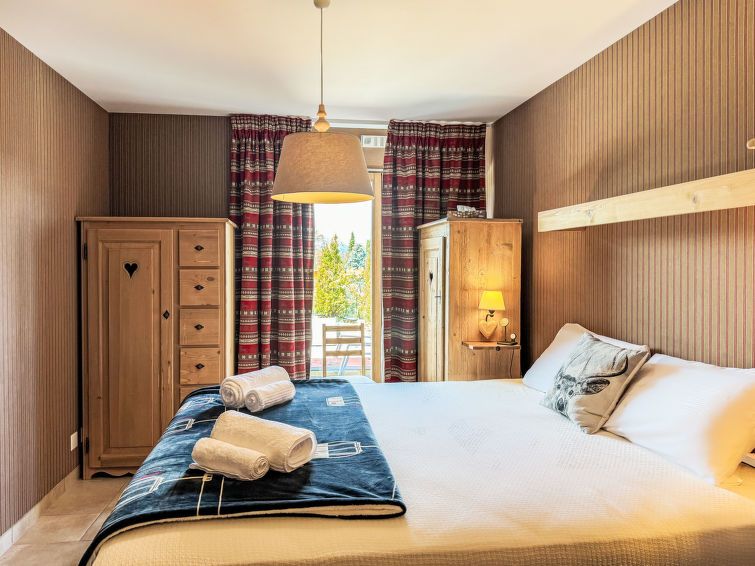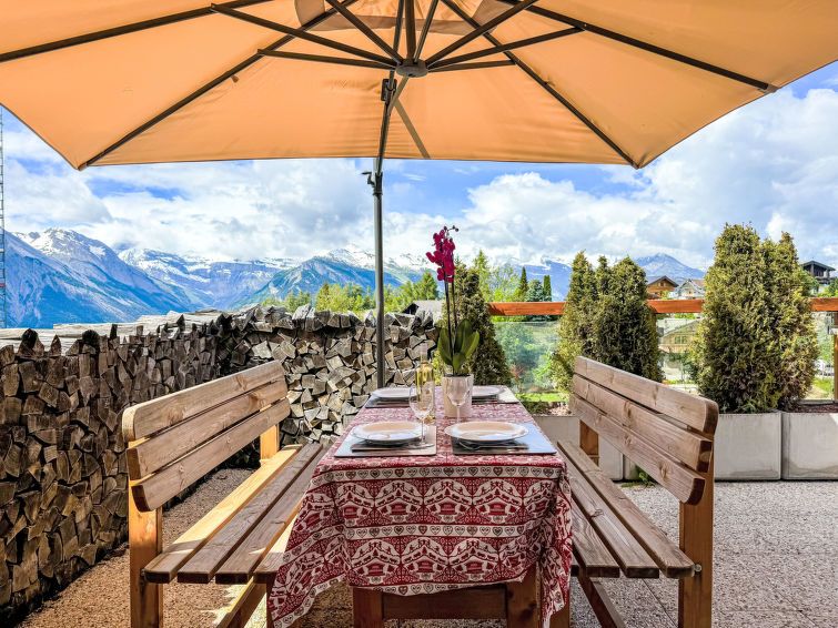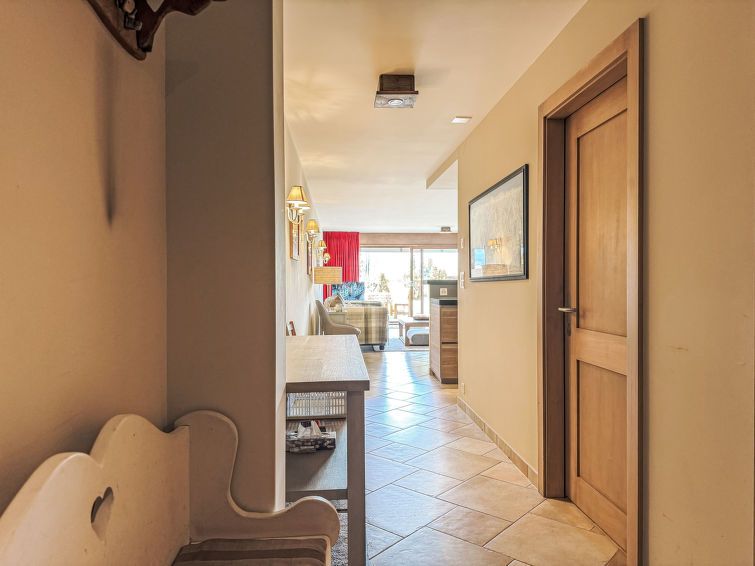 "Cor des Alpes 2", 4-room apartment 100 m2, on the upper ground floor. Comfortable and beautiful furnishings: living/dining room with open-hearth fireplace and cable TV. Exit to the terrace. 1 room with 1 double bed (2 x 90 cm, length 200 cm), bath/WC. 1 room with 1 x 2 bunk beds (90 cm, length 200 cm).