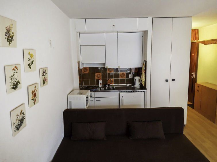 "Greppon 111", 1-room studio 28 m2 on 4th floor. Comfortable and tasteful furnishings: living/dining room with 1 sofabed (160 cm, length 190 cm), 1 wall-trunk bed (90 cm, length 190 cm), TV. Exit to the balcony. Open kitchen (dishwasher, 3 ceramic glass hob hotplates). Bath/WC. Balcony, east facing position.