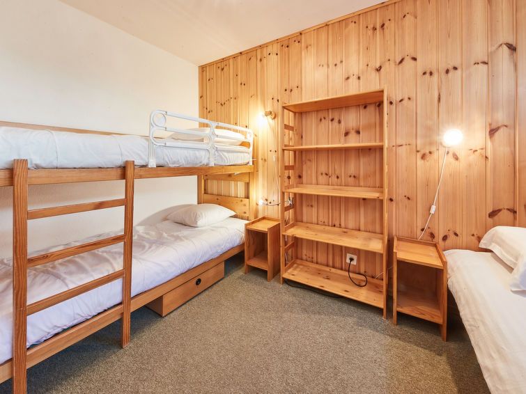"Greppon 306", 2-room apartment on 3rd floor. Practical and comfortable furnishings: living/sleeping room with 1 pull-out bed (2 pers. 2 x 90 cm, length 200 cm), TV. Exit to the balcony. 1 room with 1 bed (90 cm, length 180 cm), 1 x 2 bunk beds (90 cm, length 190 cm). Small, open kitchen (3 hot plates).