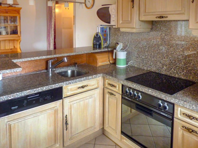 Well-groomed in the attic of an apartment building, 4th floor without elevator. The associated underground parking space is definitely a plus, but the steep driveway can be a challenge. The second bed is directly above the parents' room in the gallery. Only conditionally recommended for adults due to the height of the room, no problem for kids. The kitchen is very well equipped, it has everything you need and more. The baths of Ovronnaz are directly across the street.
