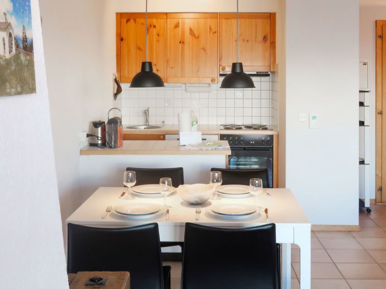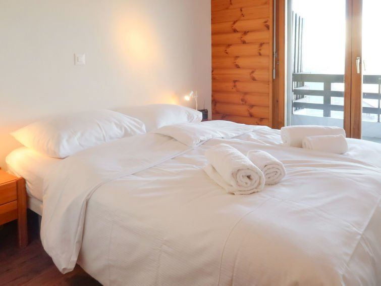 "Hauts De Nendaz B K5", 2-room apartment 46 m2 on 5th floor. Comfortable furnishings: entrance hall with 1 x 2 bunk beds (80 cm, length 190 cm). Living/dining room with open-hearth fireplace (only for decoration), cable TV. 1 room with 1 double bed (2 x 80 cm, length 190 cm). Kitchen (4 hot plates, oven, dishwasher, kettle, electric coffee machine, Capsules for coffee machine (Nespresso) extra, raclette grill, fondue Set (cheese)).