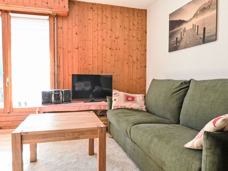 The Interhome reception is very good. Average accommodation, because kitchen and dishes are dirty. Sofa bed too small and uncomfortable. Dusty furniture. There is no ski room or room to dry ski boots. Apartment deserving of a good renovation.