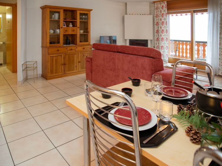 Large, spacious apartment in a small apartment complex, with all amenities (dishwasher, oven, flat screen TV) and a beautiful view over the mountains. Only downside was the shower in the bath, there was no adjustable shower rod, but a low hanging shower head, not convenient for showering (you don't take a bath every morning). And a bath mat is also desirable, quite dangerous a slippery bath. Furthermore, the location was great, many hiking options nearby and supermarket nearby.