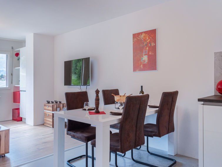 "Lake Placid B5", 2-room apartment on 3rd floor. Object suitable for 2 adults + 2 children. Renovated, beautiful and cosy furnishings: entrance hall. Living/dining room with cable TV and DVD. Open alcove with 1 x 2 bunk beds (90 cm, length 190 cm). 1 room with 1 double bed (2 x 80 cm, length 200 cm), cable TV and DVD.