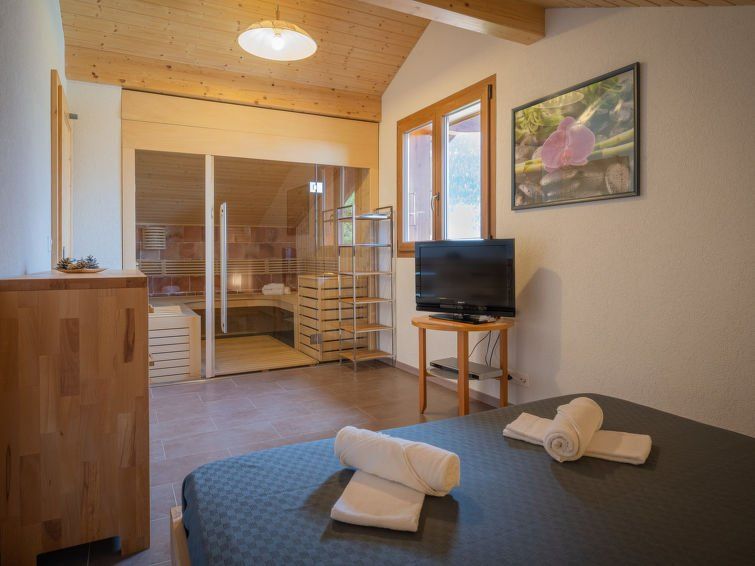 Very cozy ambience - modern infrastructure - location without direct insight from neighbors - wrong house is given via Google Maps House was only in the shade in October - access stairs turned out to be very dangerous in wet and frost - unfortunately no obvious information provided on arrival in the house about devices, WLAN, TV, etc. Since the house is apparently new, the employee in the Interhome office did not have the correct information about the location of the house or the name of the WLAN, etc.