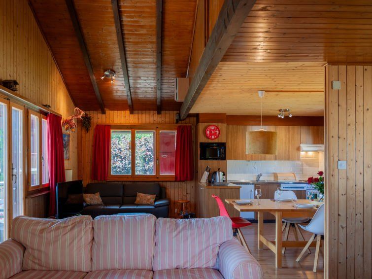 With six adults we had a fantastic week in Le Hibou. The chalet has a panoramic view and a very spacious terrace with sunbeds, chairs and tables. The location is within walking distance of the shops, the center and many beautiful hiking trails. The interior is equipped with all comforts incl. bbq, raclette sets, xbox, games and separate tv corner. We will definitely go back to this unique place!