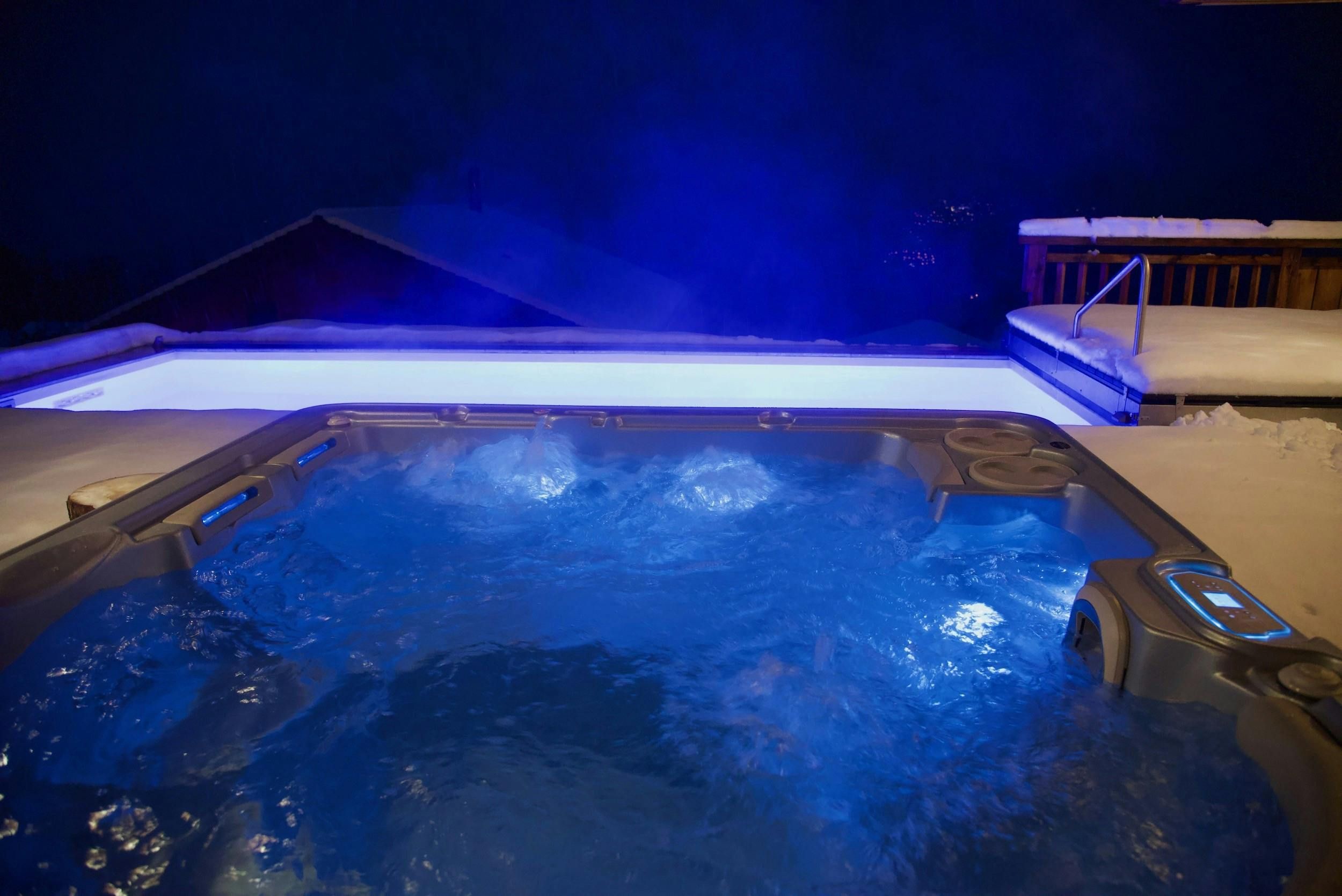 Chalet Valentine is a charming mountain chalet located in La Tzoumaz, one of Europe's best ski areas. This cozy chalet offers incredible private spa facilities, including an extra-large hot tub, large sauna, and steam shower. The all-year heated outdoor pool provides spectacular views of the mountain tops. You can retire to the rooftop terrace to enjoy dinner and panoramic views or head inside to relax in the casual lounging area before a huge feature fireplace. The chalet has a large open-plan living space with a dining table for ten and a chic, well-appointed kitchen. Each bedroom is comfortably decorated in traditional chalet style with luxurious linens and high-tech features. Chalet Valentine is located near the Savoleyeres Gondola, which is only a three-minute drive away. The chalet can be rented on a self-catered or fully-catered basis, and it includes daily housekeeping service and complimentary toiletries.