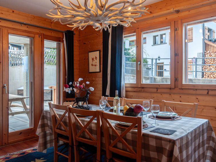 We have experienced a wonderful holiday week in Nendaz. The accommodation was just right for our small family (1 adult and 2 teenagers). The rooms are rather small in size. In the bathrooms (1x with shower, 1x with bath) there is little storage space. For a family of 4, the space would probably be too tight. The apartment is well maintained and has a spacious balcony with a beautiful view. The interior design is something for hunting lovers. We couldn't use the patio because of the cold. The noise from the après ski bar right next to the house didn't bother us at all. We felt very comfortable.