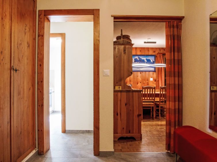 "Mont-Soleil 2", 3-room apartment 85 m2 on 1st floor. Partly renovated in 2024, practical furnishings: living room with sliding door with 2 wall-trunk beds (90 cm, length 200 cm), open-hearth fireplace and cable TV. Exit to the balcony, east facing position and south facing position.