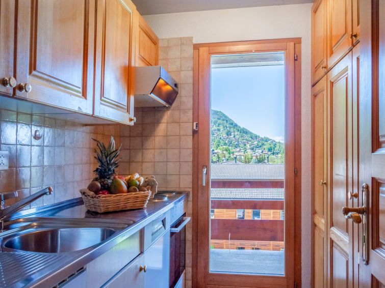 Spacious apartment, in a quiet setting, with a clear and splendid view of the Alps, balcony on three sides, plenty of storage. The rooms are perfectly functional and clean. Too bad the bathrooms and the kitchen are dated. Outdated equipment (refrigerator, hood, hob, faucets, etc.), traces (toilet bowl and bathtub, humidity in the shower cubicle, etc.), etc. The "decoration" of the living room is also from another era! Dark and disparate furniture. The pool was at maximum 25 degrees so you had to swim to not get cold! 10 minutes walk from shops. For skiing with the children, we rented a locker at the gondola, because too far to walk to/from with all the equipment. Please note that lockers must be reserved in advance in high season.