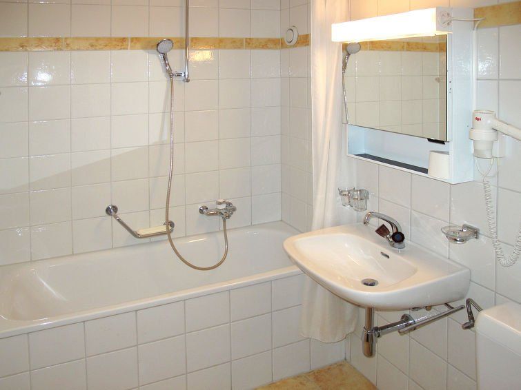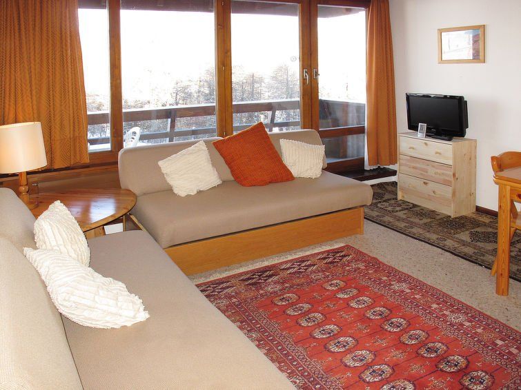 "Résidence Dixence", 2-room apartment 40 m2 on 2nd floor. Practical and comfortable furnishings: living/dining room with 2 sofabeds and cable TV. Exit to the balcony. 1 room with 1 bed and 1 double bed. Open kitchen (2 hot plates). Bath/WC. Balcony, west facing position. Balcony furniture.