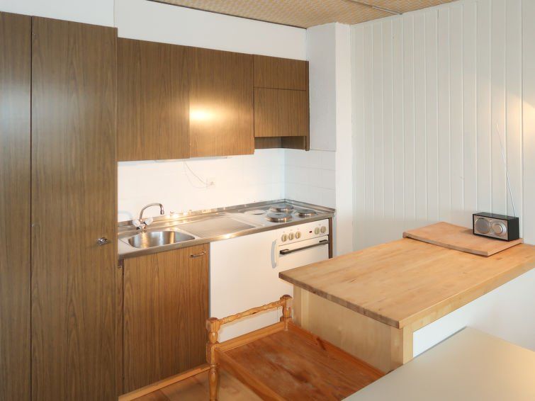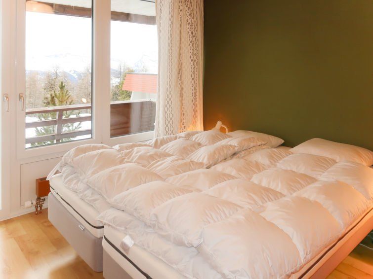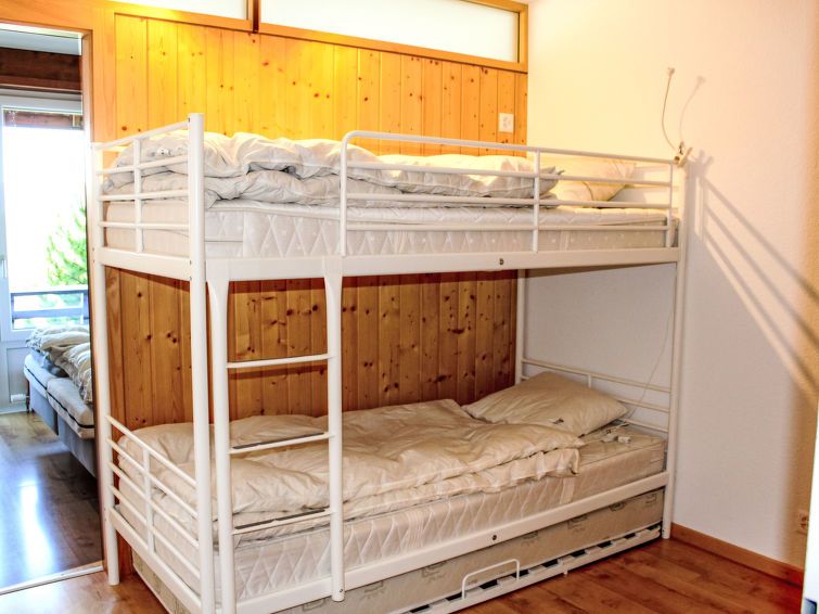 "Résidence Velan", 2-room apartment 52 m2 on 1st floor. Comfortable and tasteful furnishings: living/dining room with cable TV. Exit to the balcony. 1 room with 2 beds (80 cm, length 200 cm). Exit to the balcony. 1 children's room with 1 x 2 bunk beds (90 cm, length 190 cm), 1 pull-out bed (1 pers.